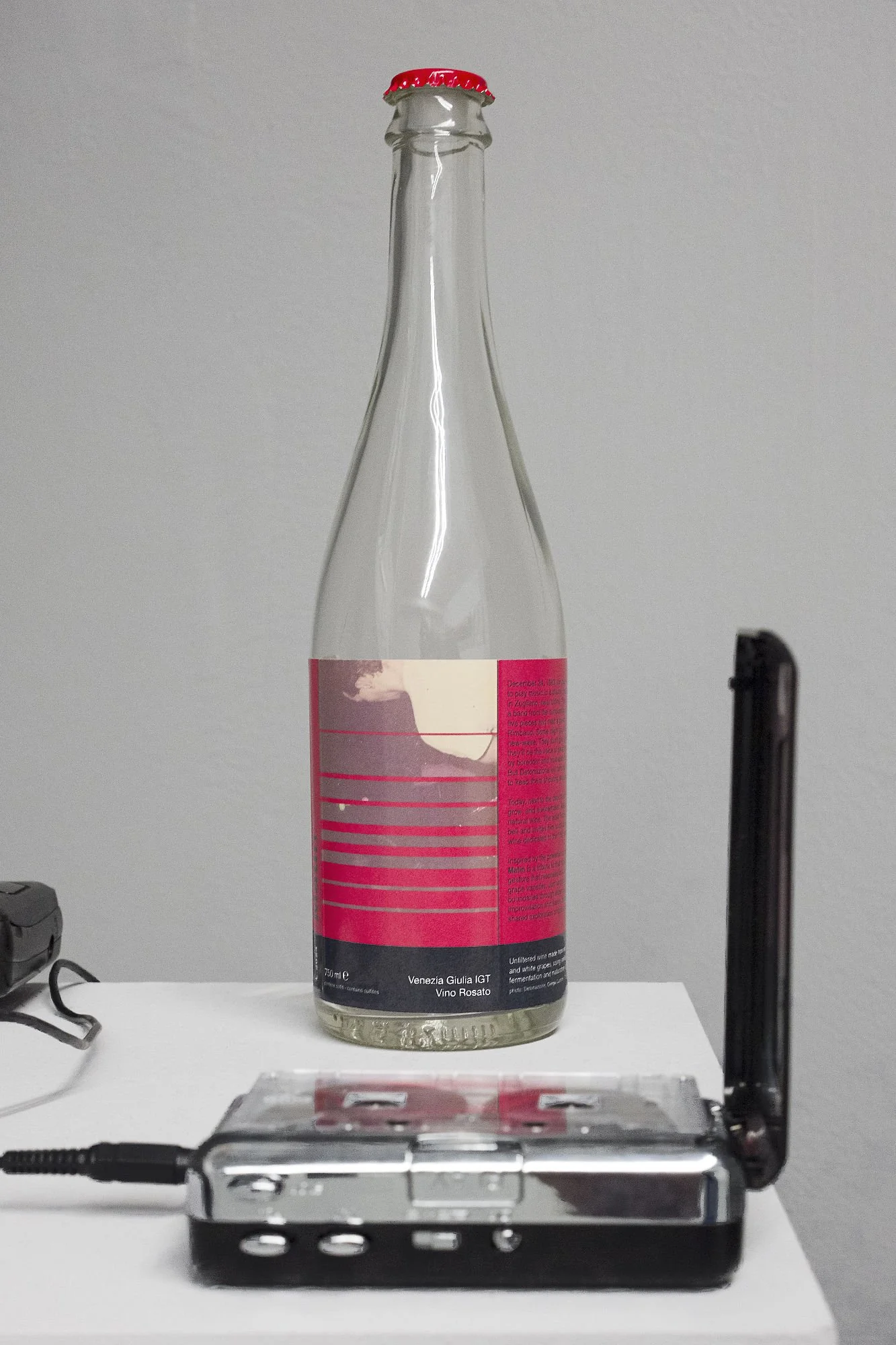 The wine underwent full fermentation during a five-week solo exhibition, which also featured a sound piece based on the only known recording of the 1983 concert—blending drums with a voice reciting Rimbaud’s poem—alongside a series of photographs and a lightbox.